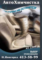 Комплексная химчистка салона автомобиля. Так же предоставляется услуга по ионизации кондиционера. Время химчистки всего салона, включая багажник и потолок, составляет от 5-7 часов. Возможна частичная химчистка элементов салона. Химчистка осуществляется на профессиональном немецком оборудовании. Цены от 2500 р. за весь салон. Центр Сормова. 413-58-99
